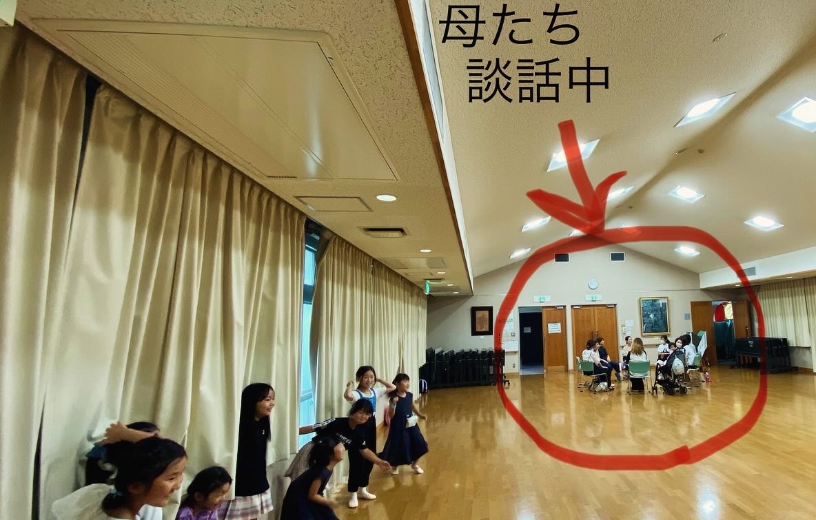前半はお母さまたちにもお手伝いいただく舞台メイクの練習